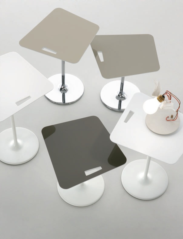 Coffee table with top made of acrylic artificial stone and base are made of chrome steel Bloom, Alias