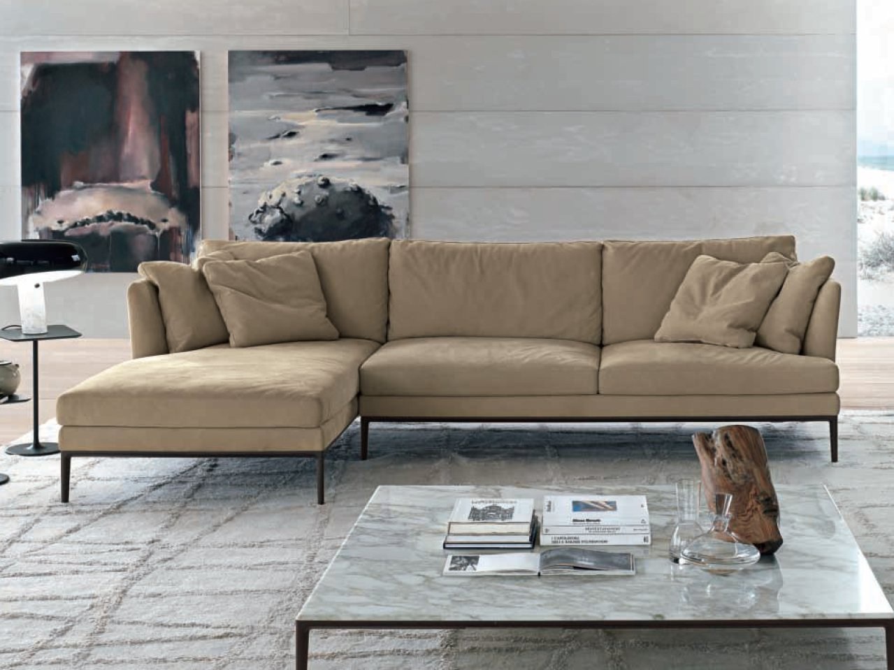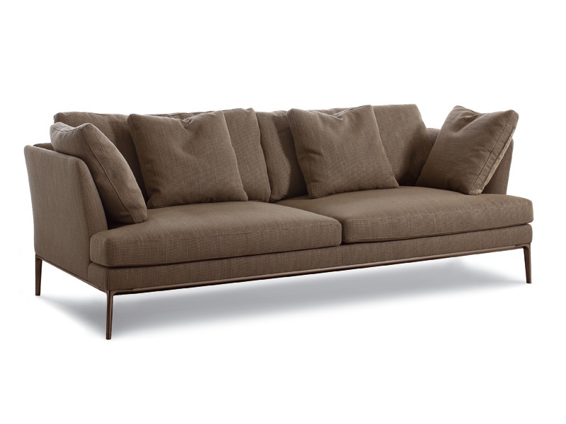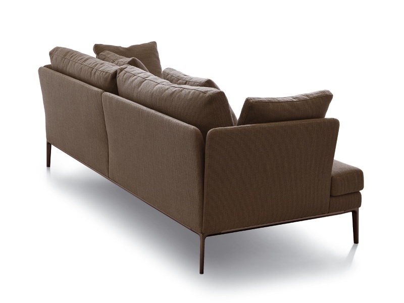 Sofa with wooden frame, aluminium base and upholstered in leather or textile fabric, Portofino, Alivar