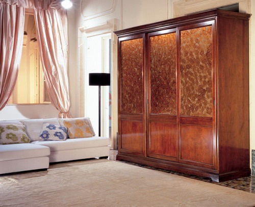 Wardrobe Geranio from the Italian manufacturer Le Fablier. The body is made of solid wood. The finish offers a glossy lacquer or veneer from the collection company. Sash with decorative glass inserts. The model is made in classic style.