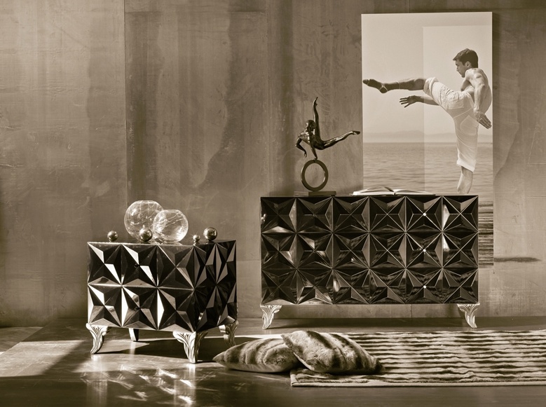 The Diamond dresser from the Italian manufacturer Bizzotto. The frame is made from solid wood, finished off in glossy black lacquer legs are silver, carved. Model with three drawers, will decorate the interior in a modern style.