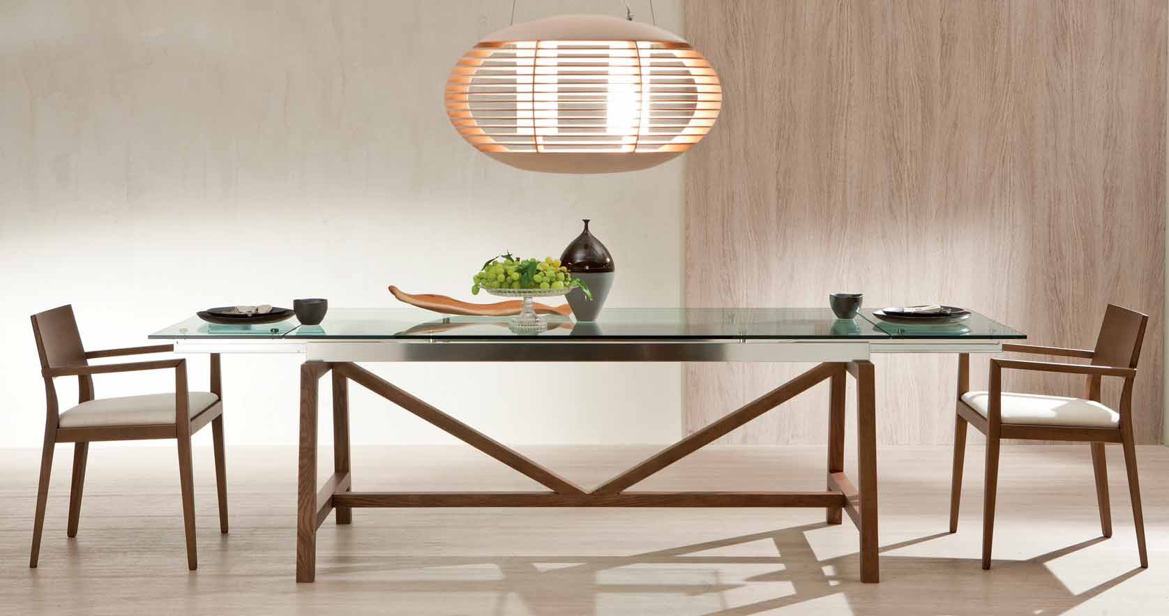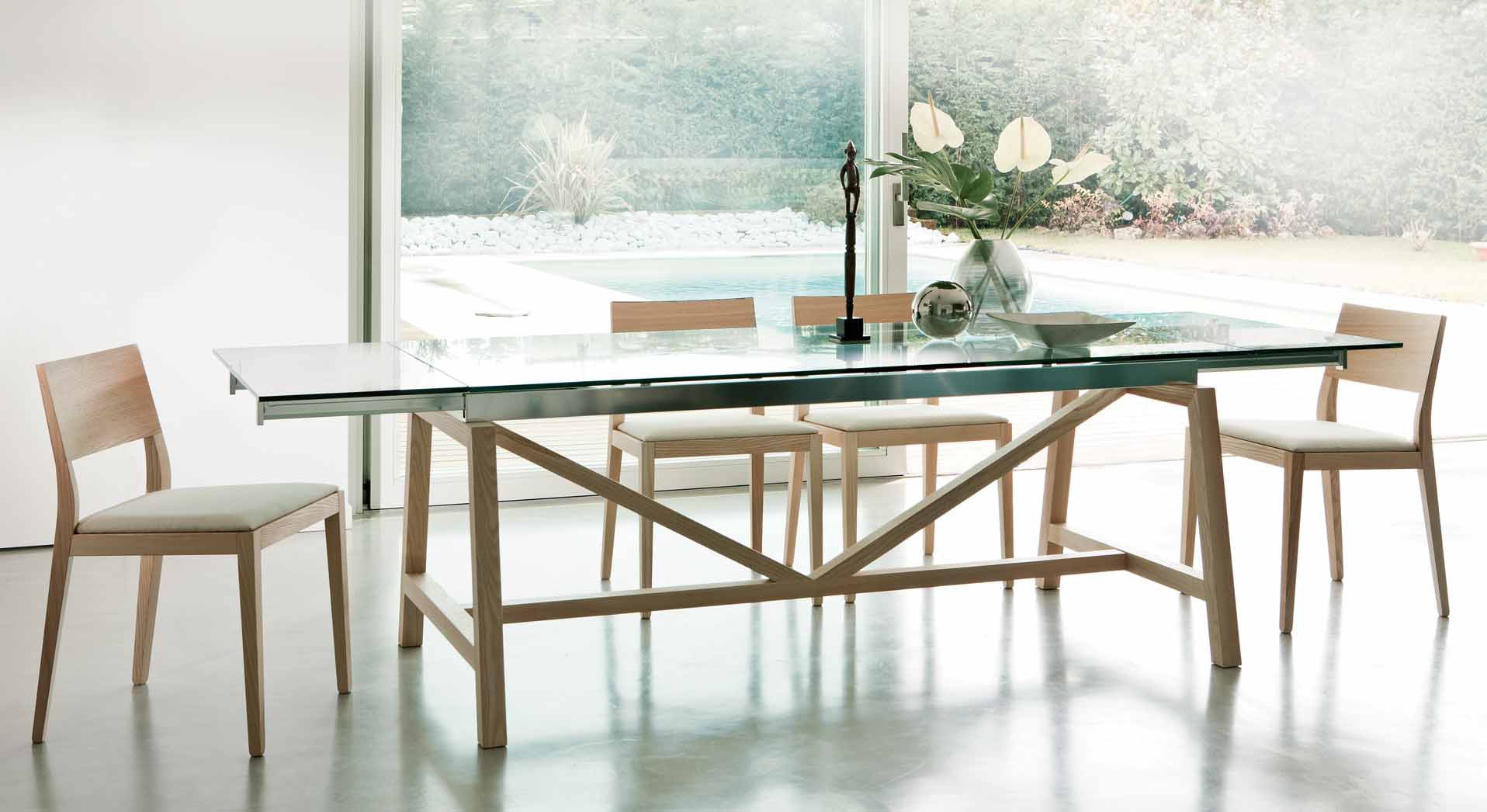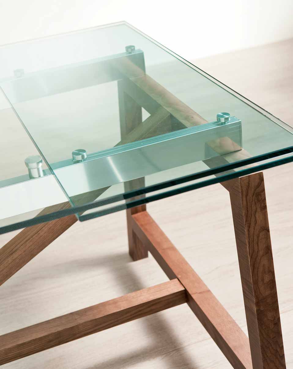 Dining table from the Italian manufacturer Pacini & Cappellini. Folding the model in a modern style. Materials: steel, wood, glass. Colours in stock.