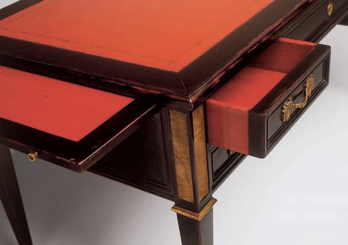 Desk from the Italian manufacturer Salda. Includes five drawers of different sizes. Feet high is supplemented by tips. The top is rectangular. Material - solid wood. The varnish finish offered. Decorative metal fittings.