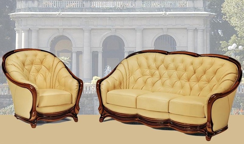 Casanova sofa from Italian manufacturer BM Style. The frame is made from solid beech or fir, upholstery - leather. The seats are removable. A triple model with a high back. A perfect choice for a living room in classic style. Product color beige.