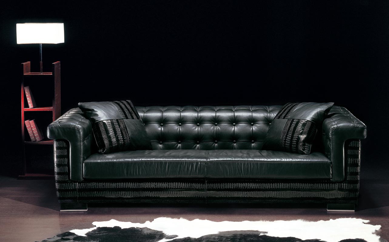 Triple Ascot sofa from Italian manufacturer Poles Salotti. Frame - solid wood. Upholstery fabric - genuine leather from the collection company. The design of complementary decorative pillows. The back is decorated with stitch Capito. Colours in stock.