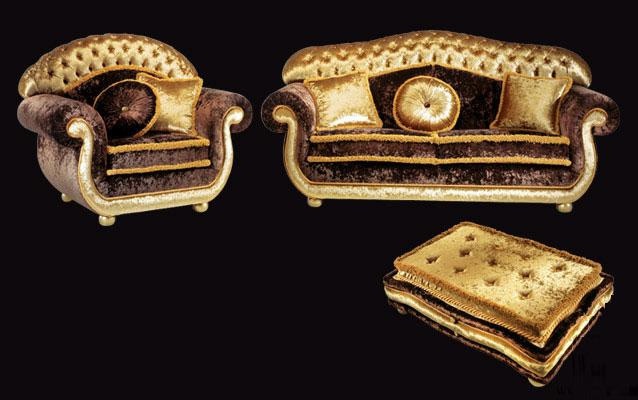 Magnifico sofa from Italian manufacturer BM Style. Filler - foam, upholstery - textiles from a range of campaigns. The seats are removable. Double model with a high back. The design of complementary decorative pillows different shapes. A perfect choice for a living room in classic style. Colors: Golden, yellow, red.