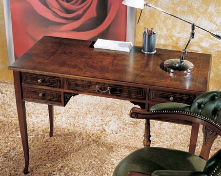 Desk from the Italian manufacturer-Seven sedie perfectly. The frame and legs made from solid wood. The table top is rectangular. Finish - gloss lacquer. Drawers complemented with metal handles. The model is made in classic style.