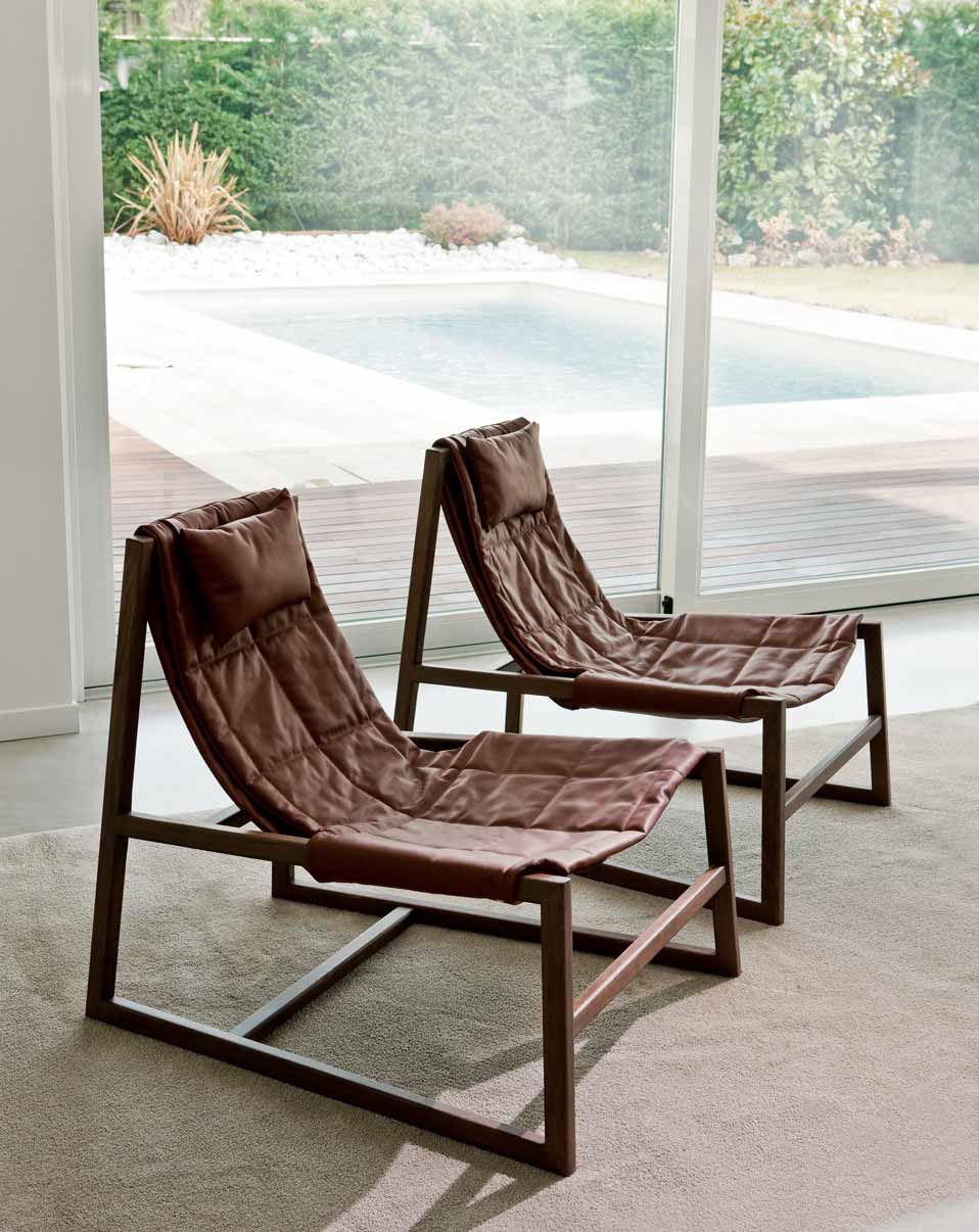Chair in modern design from the Italian manufacturer Pacini & Cappellini. Frame - natural wood, upholstery - leather. This furniture ideal for relaxing in the fresh air. Colours in stock.