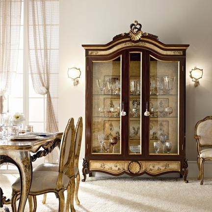 Showcase Andrea Fanfani from the Italian producer Andrea Fanfani. The frame is made from solid wood, the surface is treated with varnish from the range of the campaign. The glass fa?ade. The decor of gold leaf. Decoration handmade. The model is decorated with inlay. A great choice for the interior in classic style. Colours in stock.