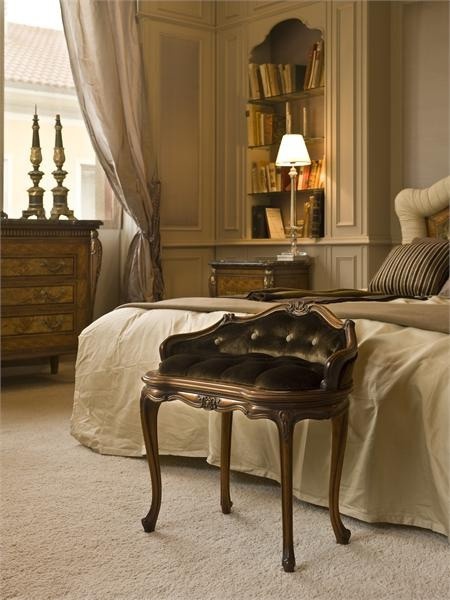Stool from Annibale Colombo Italian manufacturer Annibale Colombo. The frame is made from solid cherry. Upholstery textile or leather from the company portfolio. Carving handmade. A chic model for the interior in classic style. Colours in stock.