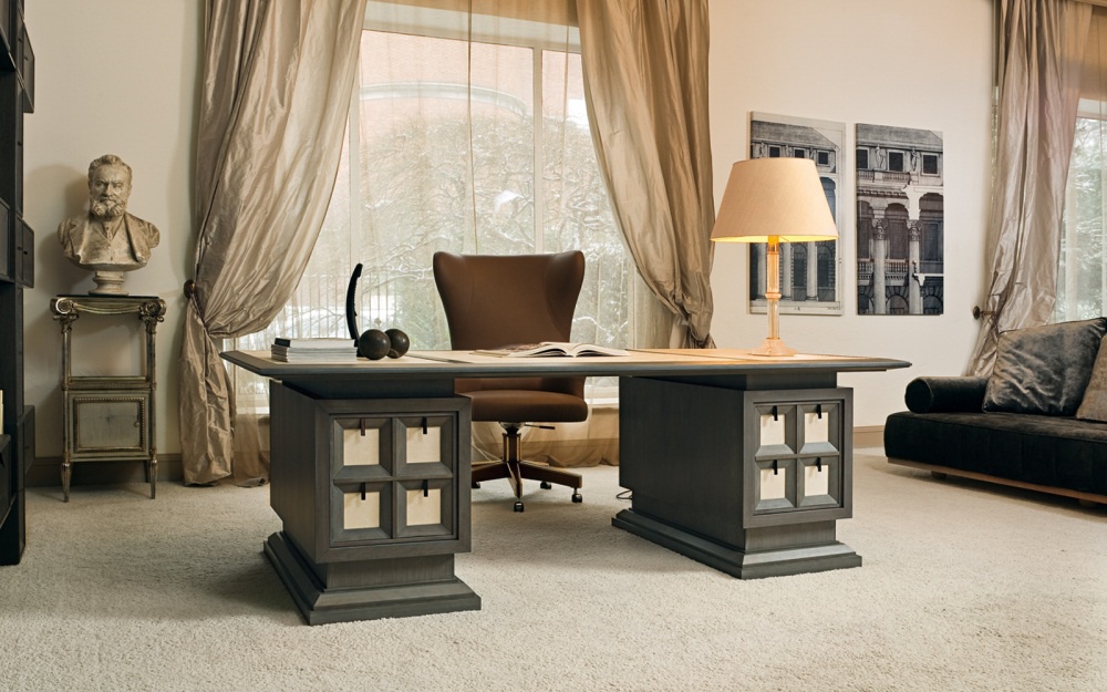 Writing table from Annibale Colombo Italian manufacturer Annibale Colombo. The frame is made of solid cherry and leather. The model is rectangular. The perfect choice for Cabinet in art Deco style. Colours in stock.