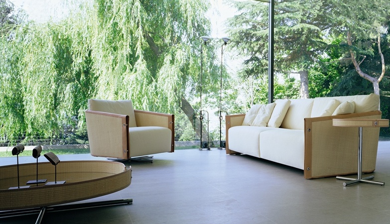 Bedside coffee table on steel frame with leather profile Lario 10-11, Bonacina Pierantonio