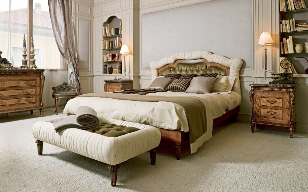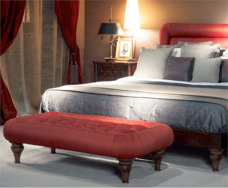 Poof Annibale Colombo from the Italian manufacturer Annibale Colombo. The legs are made of solid walnut, upholstered in fabric or leather from a range of campaigns. The model is intended for interior in classic style. Colours in stock.