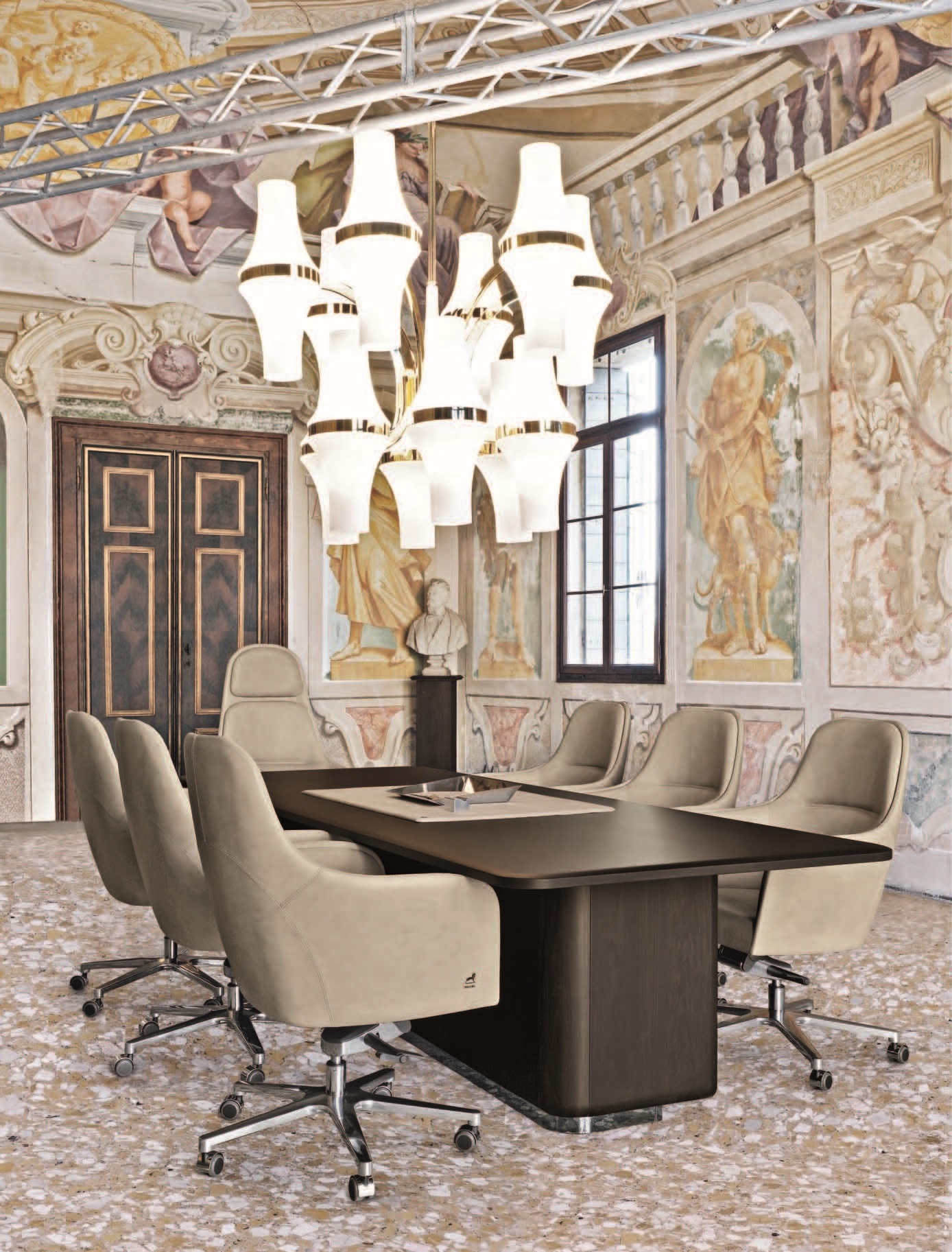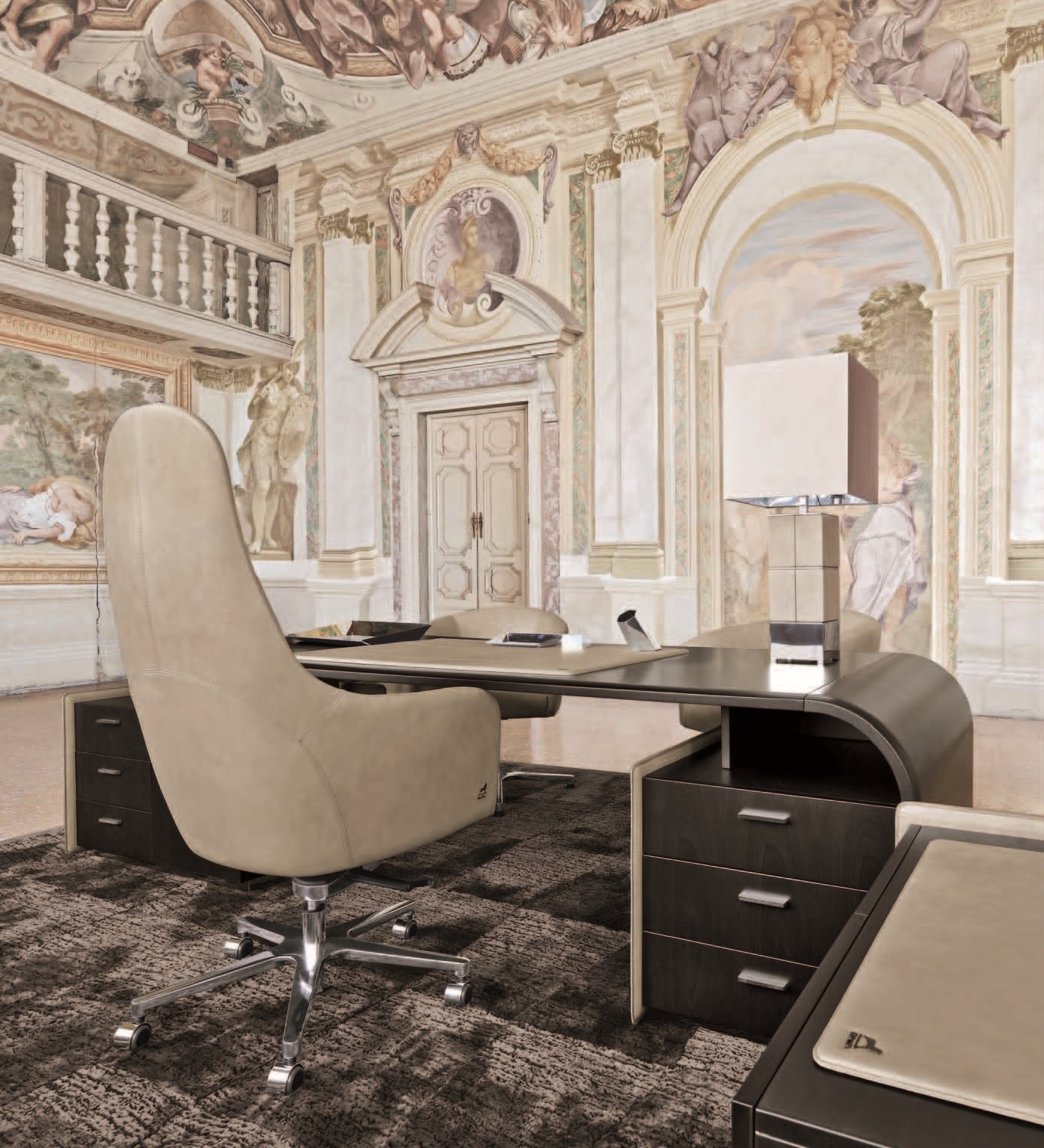 The Gramercy chair from the Italian manufacturer Smania. The frame is hidden. The base of radial five, supplemented by the wheels. Material - metal. Upholstery textile or leather. Offers a wide selection of textures and colors. The model is made in a modern style.