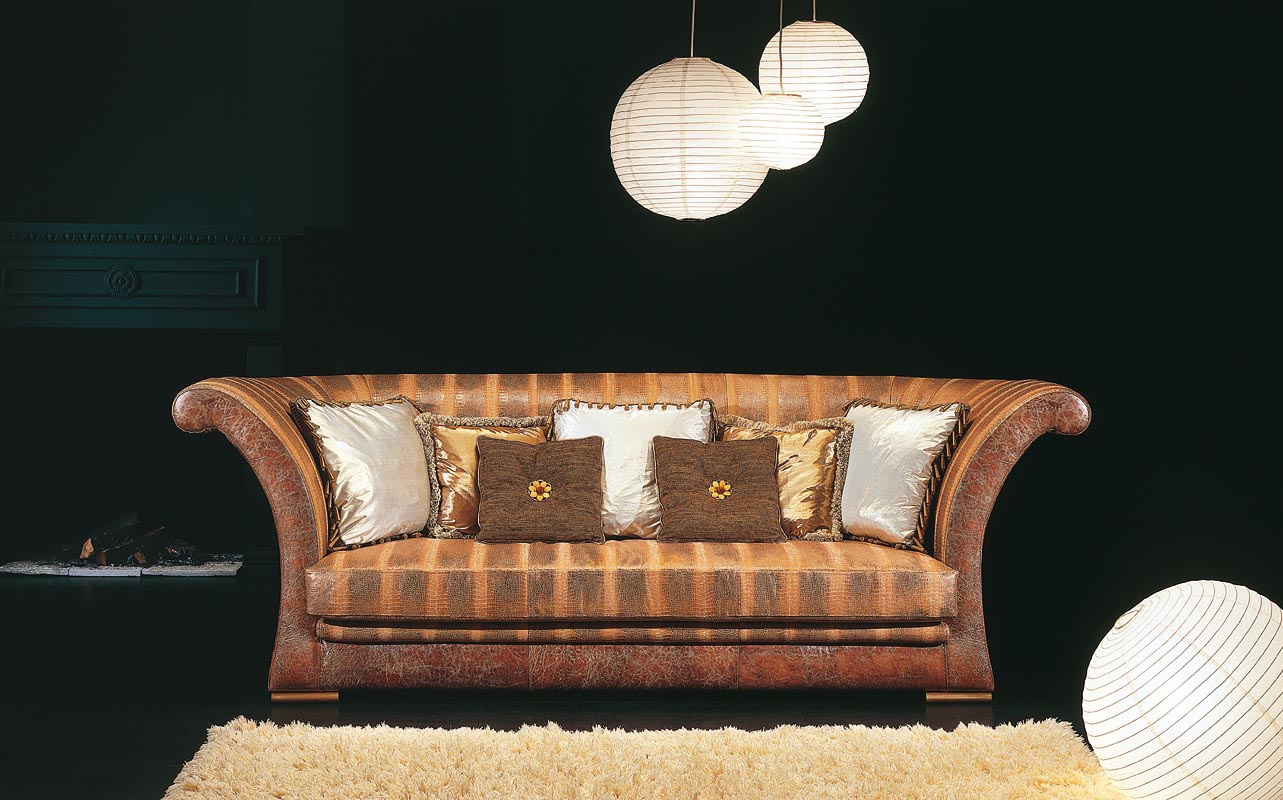 Double, triple Axolute sofa from Italian manufacturer Poles Salotti. Designed in art Deco style. Frame - wood. Upholstery fabric - textile or leather from the collection company. Colours in stock. The design of complementary decorative pillows.