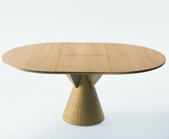 Dining table wooden frame covered with RATAN, or skin Pixie 1, Bonacina Pierantonio