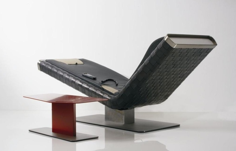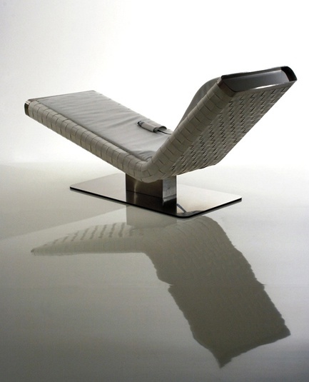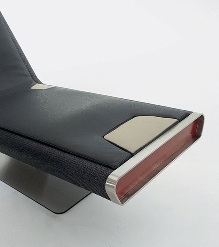 Chaise lounge lined with leather and metal T-Bird, Bonacina Pierantonio