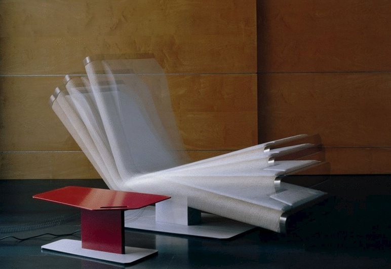 The lounger T-Bird from the Italian manufacturer Bonacina Pierantonio. The model is decorated with leather and metal. Perfect choice for modern interiors. Colors: white, red, black.