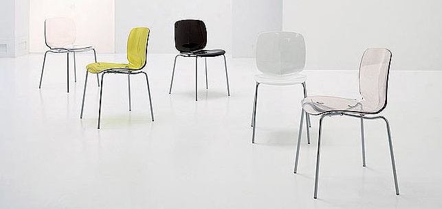 The Loto chair from the Italian manufacturer Bonaldo. The frame is made of steel, backrest and seat plastic. The model is designed for dining room in modern style. Colors: transparent, white, yellow.