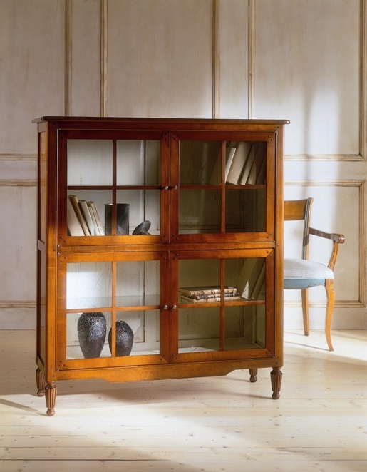 Showcase from Italian manufacturer Stella Del Mobile. Model on low legs. The Cabinet is made of solid wood. Offered lacquer finish or veneer from the collection company. Sash glazed. Accessories metal. Made showcase in classical style.