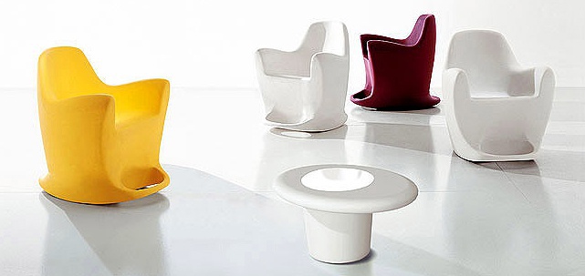 Rocking chair Flip from Italian manufacturer Bonaldo. The frame is made from plastic. The model will decorate the interior in a modern style. Colors: white, yellow, red.