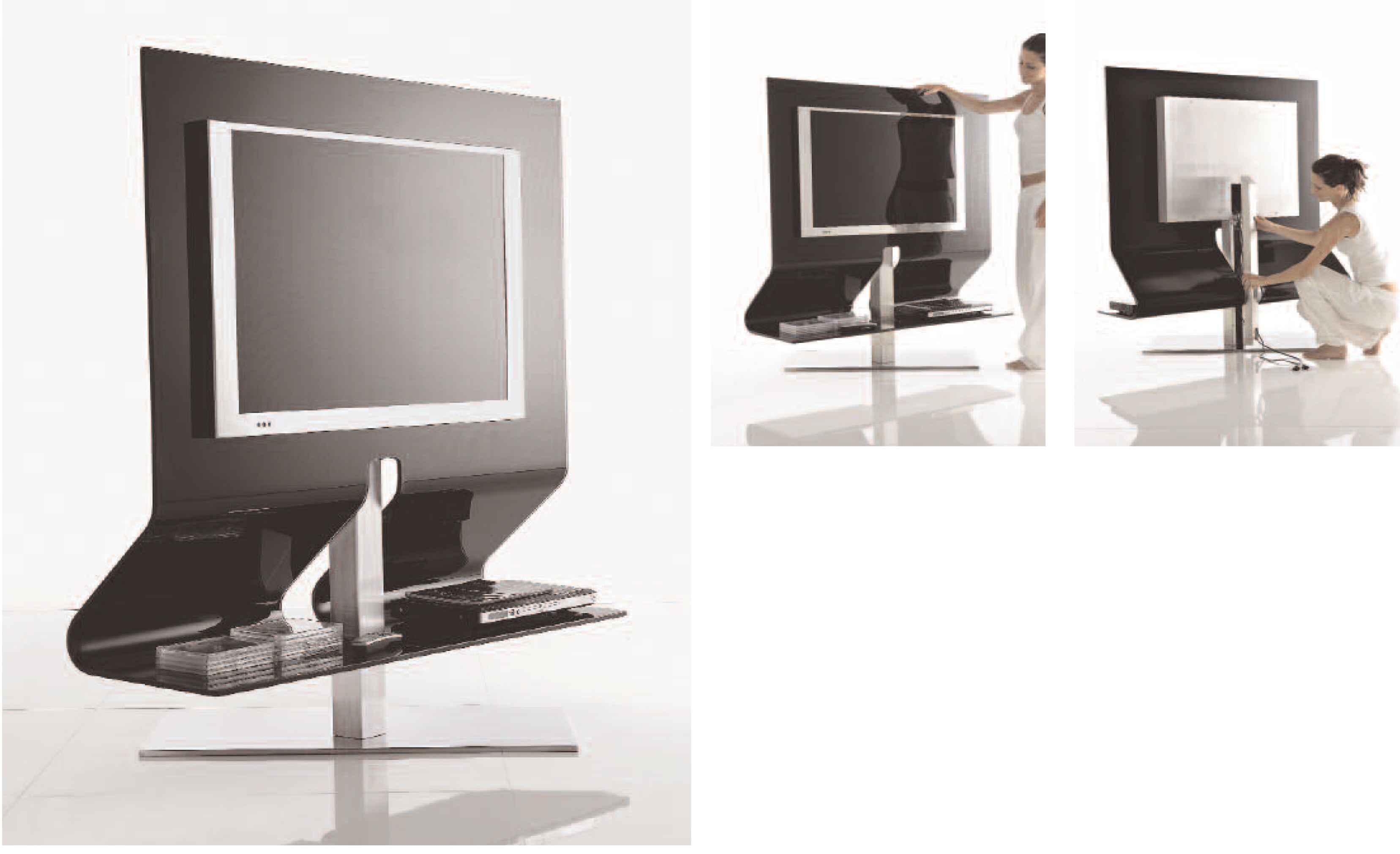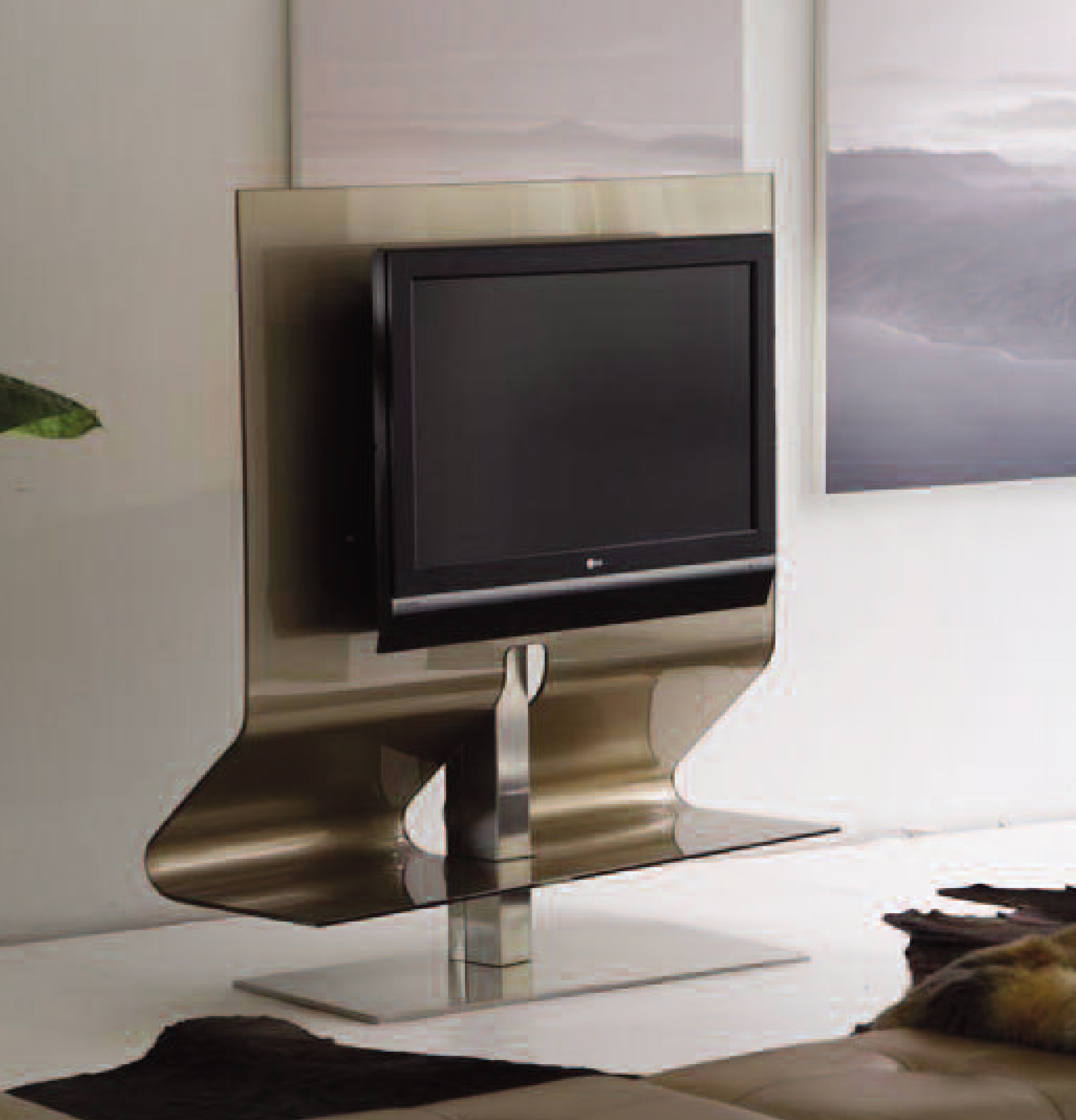 TV stand Tonin Casa made of tempered glass with a stem of steel. There are four colors of glass: extra white, black, red, champagne.