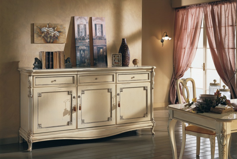 The buffet from the Italian manufacturer at the stilema stand. Made from solid wood. Finish offered a choice from the collection of the company. The handle is made of metal. Swing doors are locked. Decoration is the decorative carving handmade. Elegant and roomy model will become decoration of any interior.