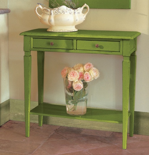 The console from the Italian manufacturer Tonin casa. Model on high legs. Includes two drawers. Frame made of solid wood. Finish offered a choice from the collection of the company. Accessories metal. Graceful and elegant console will adorn your interior.