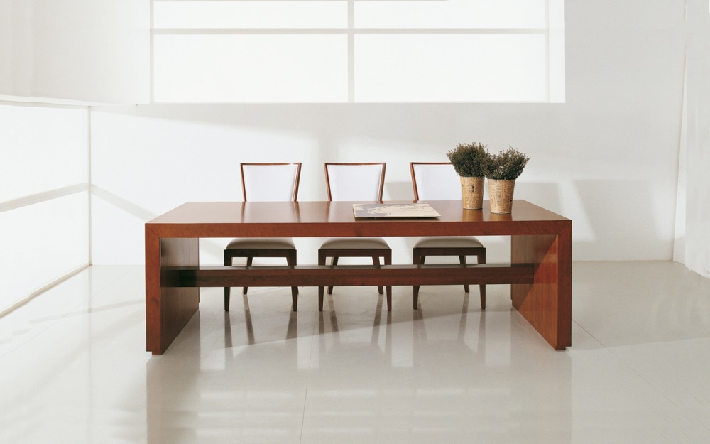Dining table from Annibale Colombo Italian manufacturer Annibale Colombo. The frame is made from solid cherry. Model folding/sliding, rectangular shape. A lovely choice for dining room in modern style. Colors: natural wood color, brown.
