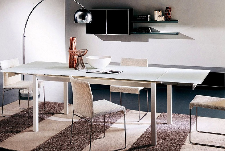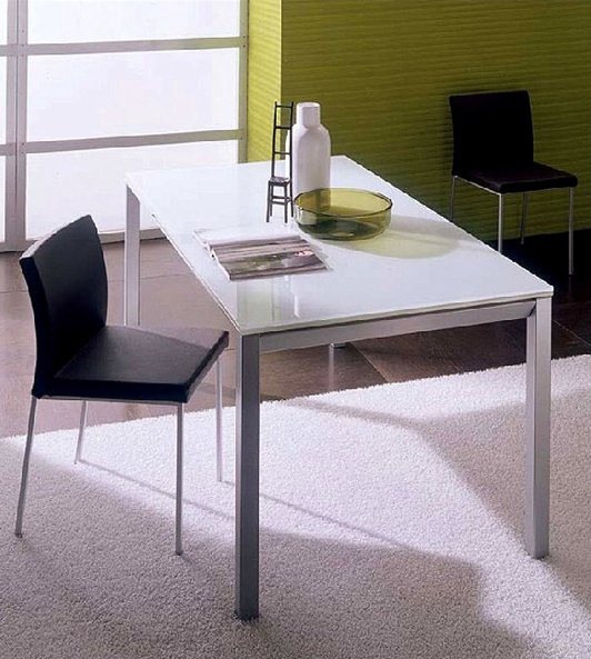 Dining table sliding on steel frame with glass top Airo, Bontempi Casa