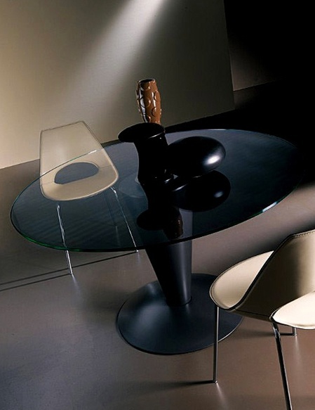 Conico dining table from Italian manufacturer Bontempi Casa. The frame is made of metal, the top of the glass. Model round shape. The perfect choice for dining room in modern style. Colours in stock.