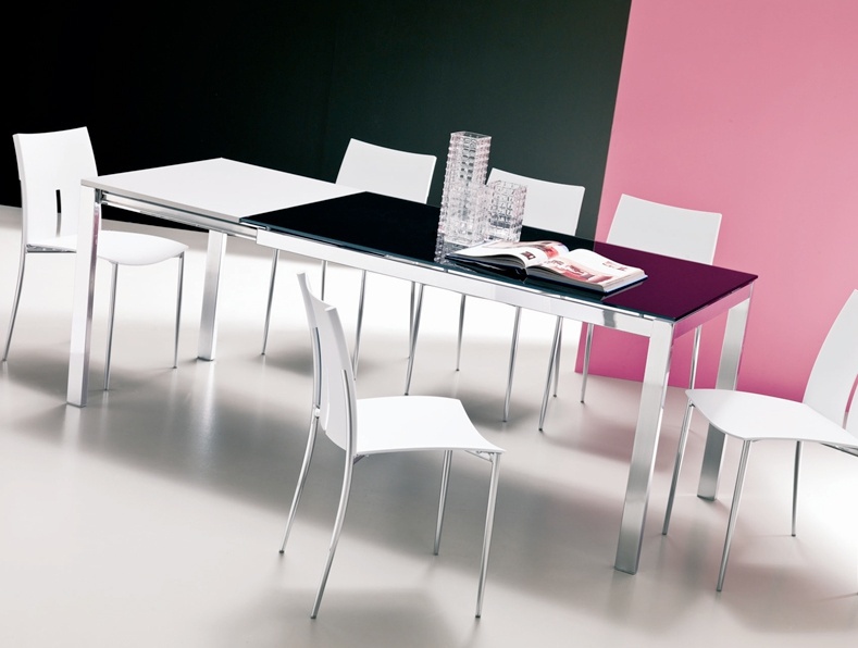The EOS sliding dining table from Italian manufacturer Bontempi Casa. The frame is made of steel, top glass. The model is rectangular. A lovely choice for dining room in modern style. Colours in stock.