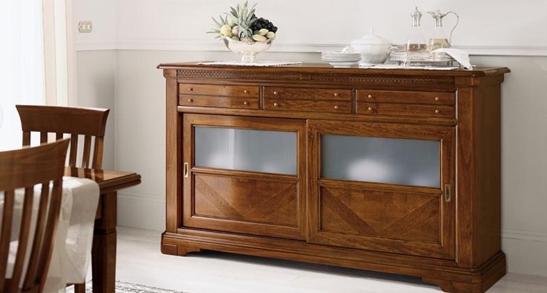 The buffet 4216Z / 4216P from the Italian manufacturer Bruno Piombini. The frame is made from solid poplar, swing - glass. Model with double doors and drawers. Perfect choice for classic style. Colors: natural wood color, brown.