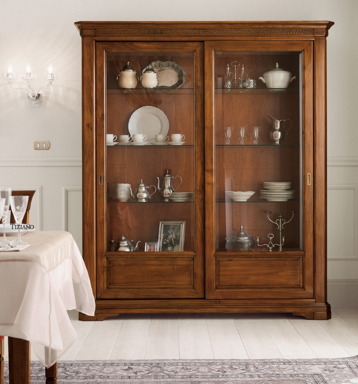 Showcase 4423Zl / 4223ZG from the Italian manufacturer Bruno Piombini. The frame is made from solid poplar, the doors are glass. A chic model for the interior in classic style. Colors: transparent, natural wood color, brown.