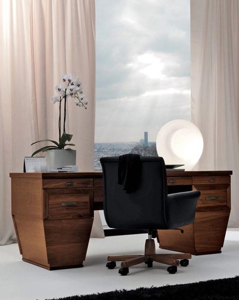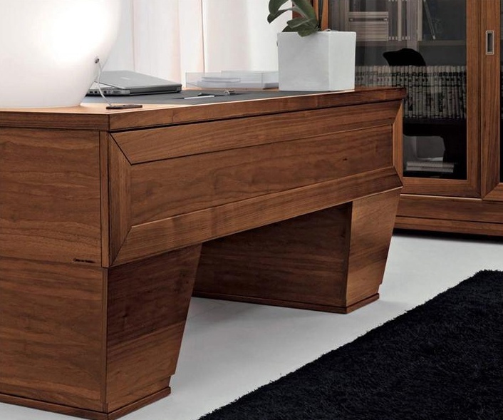 Desk 8040 from the Italian manufacturer Bruno Piombini. The frame is made of solid beech. The model is rectangular with drawers of different depth. A chic choice for the office in the art Deco style. Colors: natural wood color, brown.