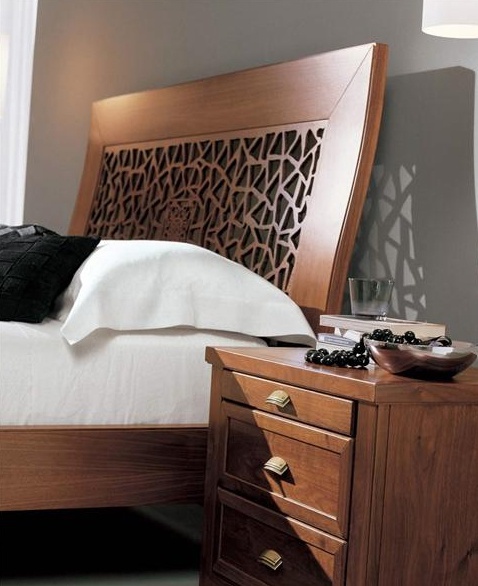 Bed 8081 / 8091 from the Italian manufacturer Bruno Piombini. The frame is made of solid beech. Model double bed with high headboard. Great choice for the bedroom in classic style. Colors: natural wood color, brown.