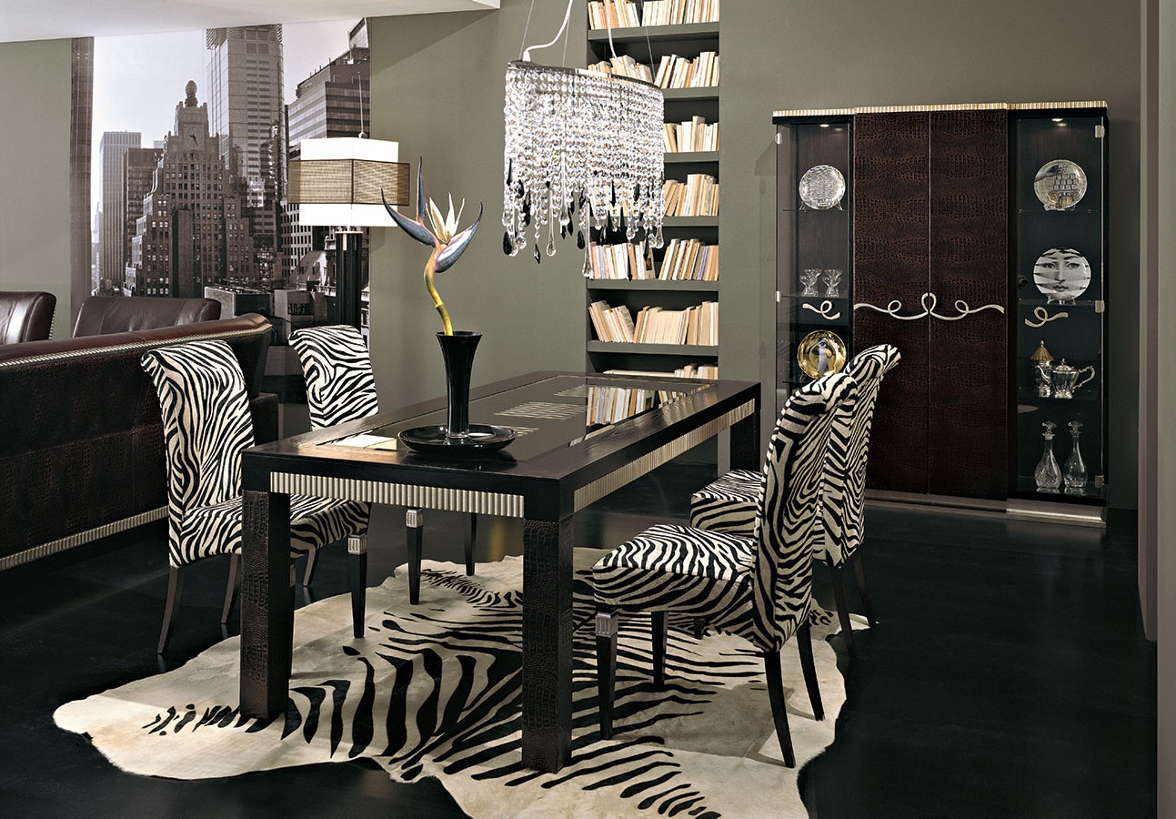 | Description: | A chair from the Italian manufacturer Florence Collections. Model with a high back. Frame made of solid wood. Finish Atlantique 6/1 cat.A. Legs are decorated with silver foil. Upholstery - leather Zebra Print cat.C. |
