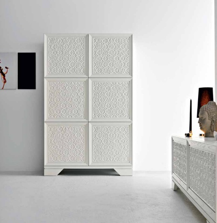 The buffet from the Italian manufacturer Flai. The model is made of wood. Finishing varnish from the company portfolio. The facade is decorated with carvings. Color scheme - white. The model is made in classic style.