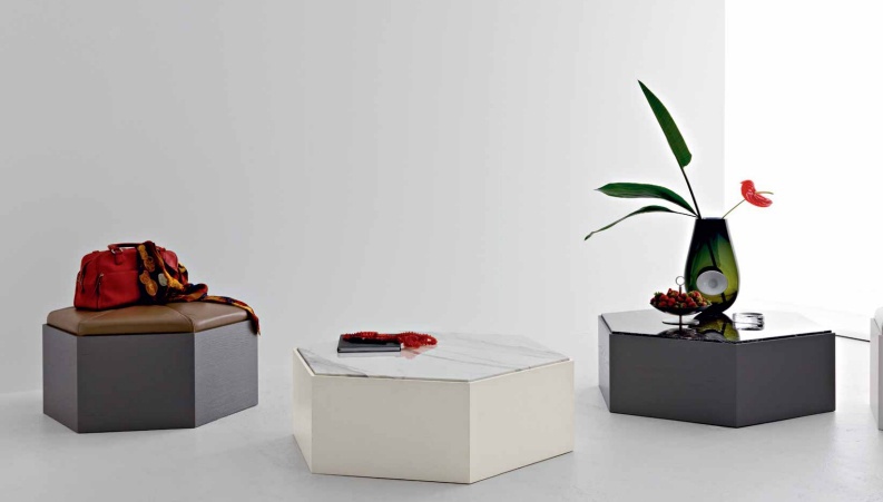 Coffee table from the Italian manufacturer Flai. Model figure shape. Frame made of wood. The surface is painted white. In addition, you can purchase puffs similar design.