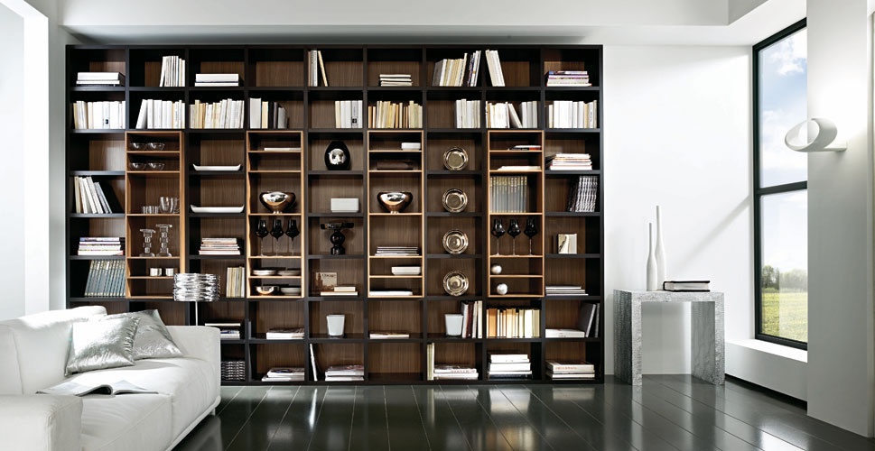 The rack, from the Italian manufacturer Santarossa. Carcas made of wood. Finishing varnish from the company portfolio. The model contains shelves and sections for books. The bookcase will perfectly complement the modern living room inetrior.
