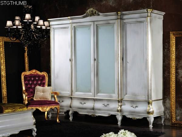 Wardrobe from the Italian manufacturer Mirandola Export. The frame is made from solid wood, middle door glass. Module for storage of things for short curly legs. Great model for the interior in classic style. Product color white.
