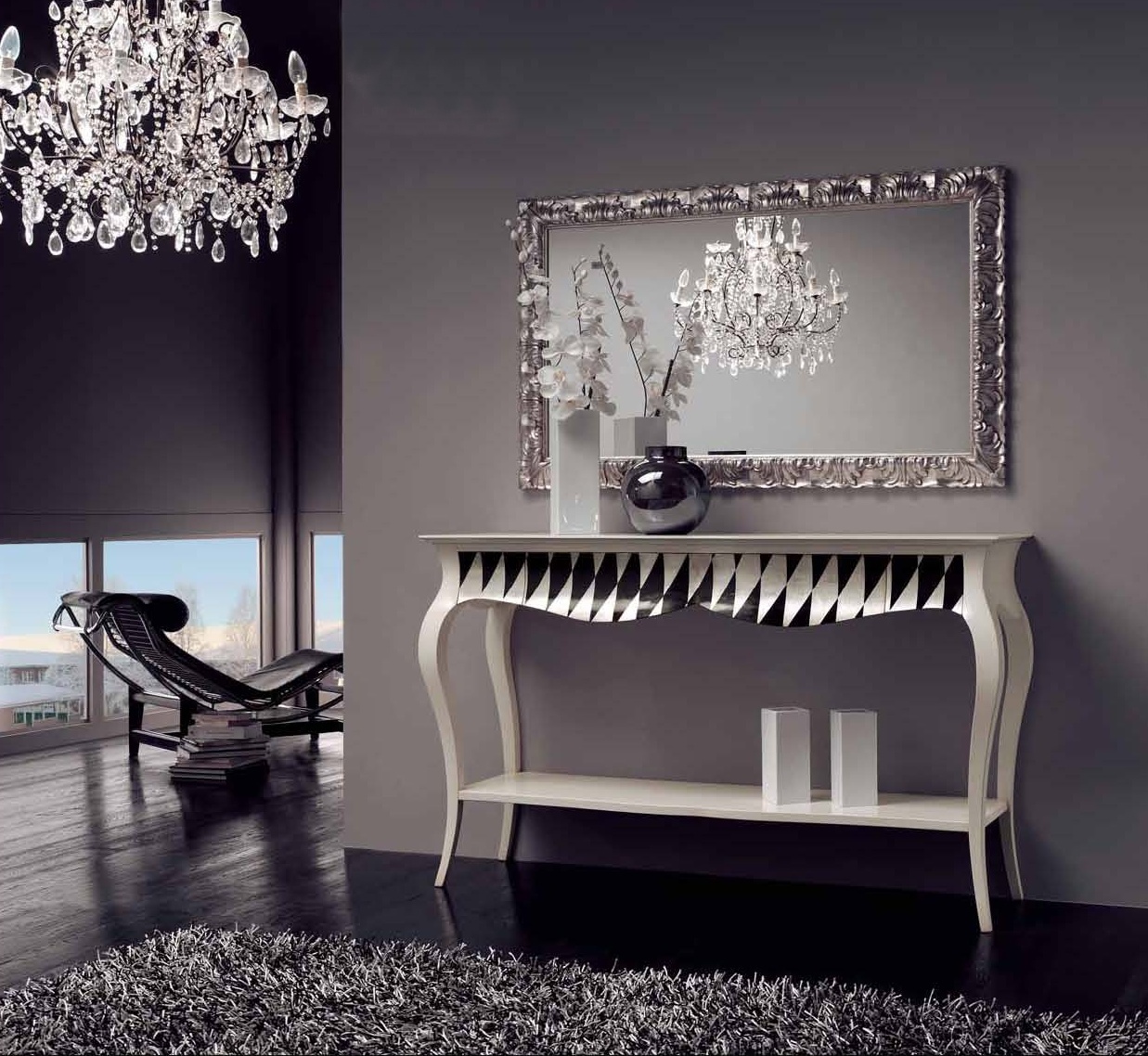 The console on high legs from the Italian manufacturer Mirandola Export. The frame is made from solid wood. Great model for the interior in the eclectic style. Product color white and black.