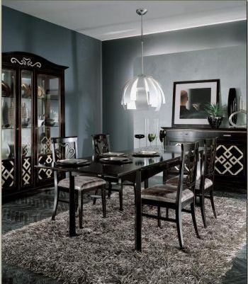 Set for the dining room from Italian manufacturer Mirandola Export. Set includes: dining table and chairs with soft upholstery. The furniture is made of solid wood. Upholstery of the chairs is the textiles from the range of the campaign. Model color light. A style classic.