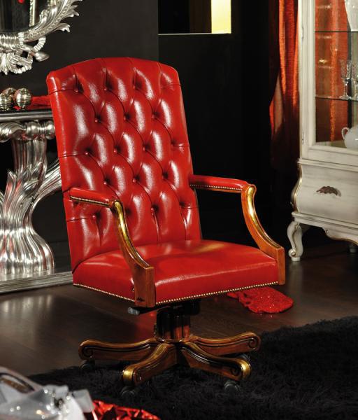 Chair in leather upholstery from Italian manufacturer Mirandola Export. Office chair on wheels. The model with high backrest and armrests hard. Upholstery made of genuine leather Burgundy. A style classic.