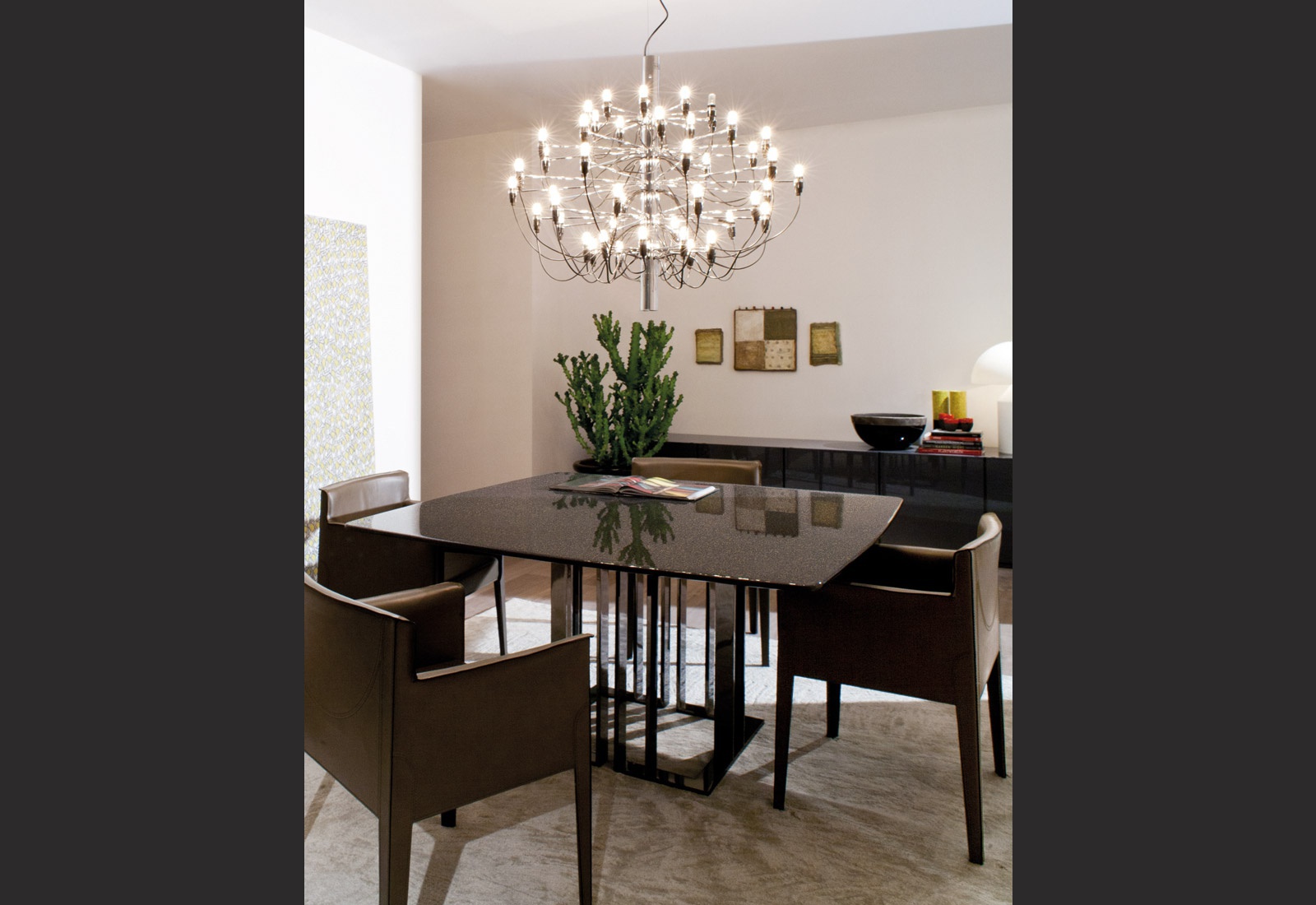 Tautou chair from the Italian manufacturer Meridiani. The model with armrests and high back. Frame completely made of wood and covered with genuine leather. Color to be selected from the range of the company. The seat is filled with soft polyurethane foam. A chair made in a contemporary style.