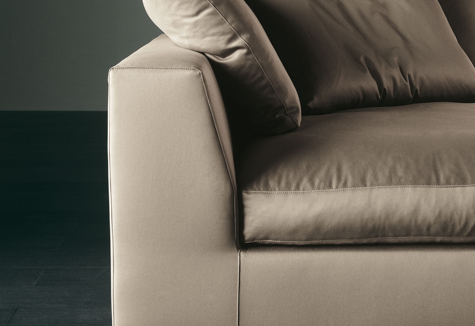 Lewis Plus sofa from Italian manufacturer Meridiani. The frame and legs are made of wood. Upholstery choice of leather or textile. Filler - foam and fluff. Decoration are decorative pillows. The model is made in a modern style.