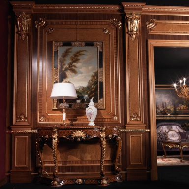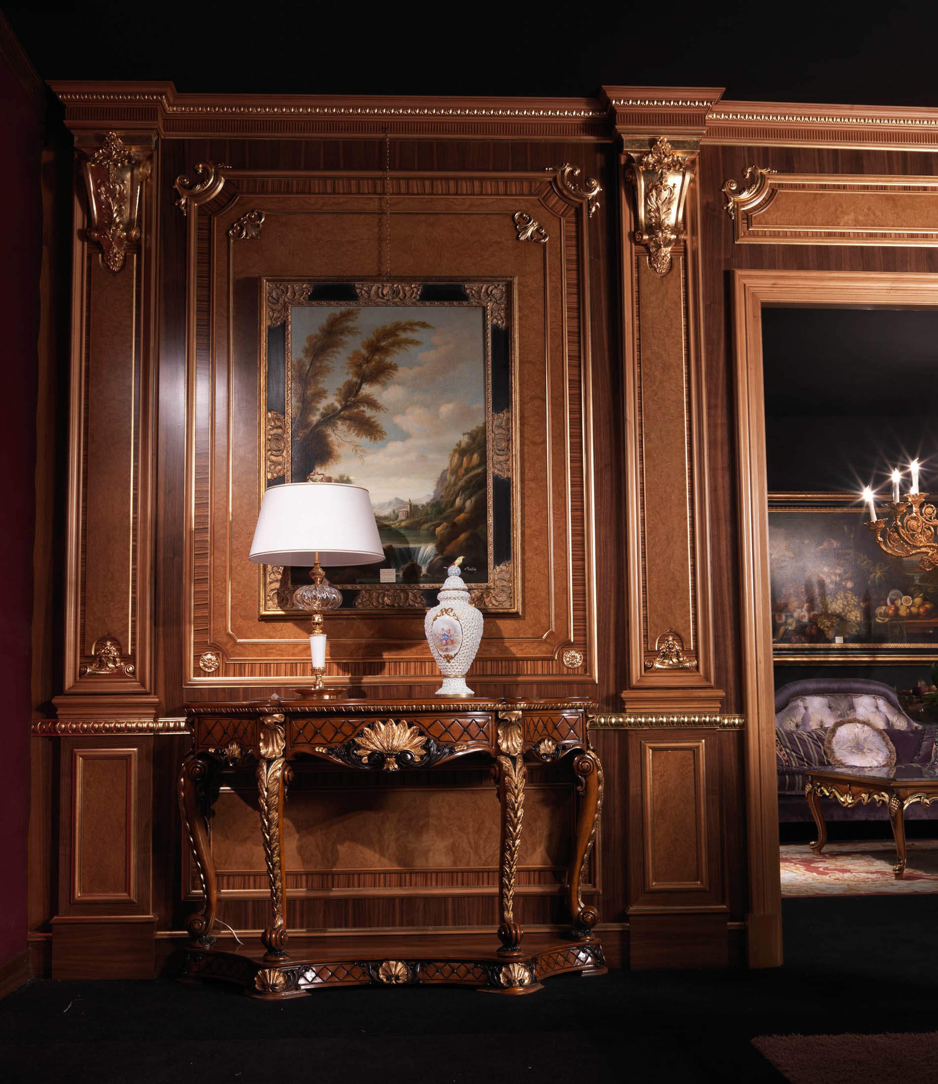 The console on high legs from the Italian manufacturer Cantaluppi. The console on four massive legs. The frame is made from solid wood. Finishing varnish from the company portfolio. The model will perfectly complement a classical interior.