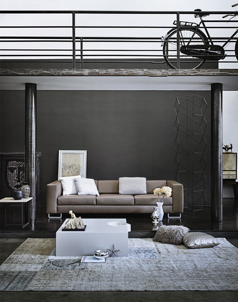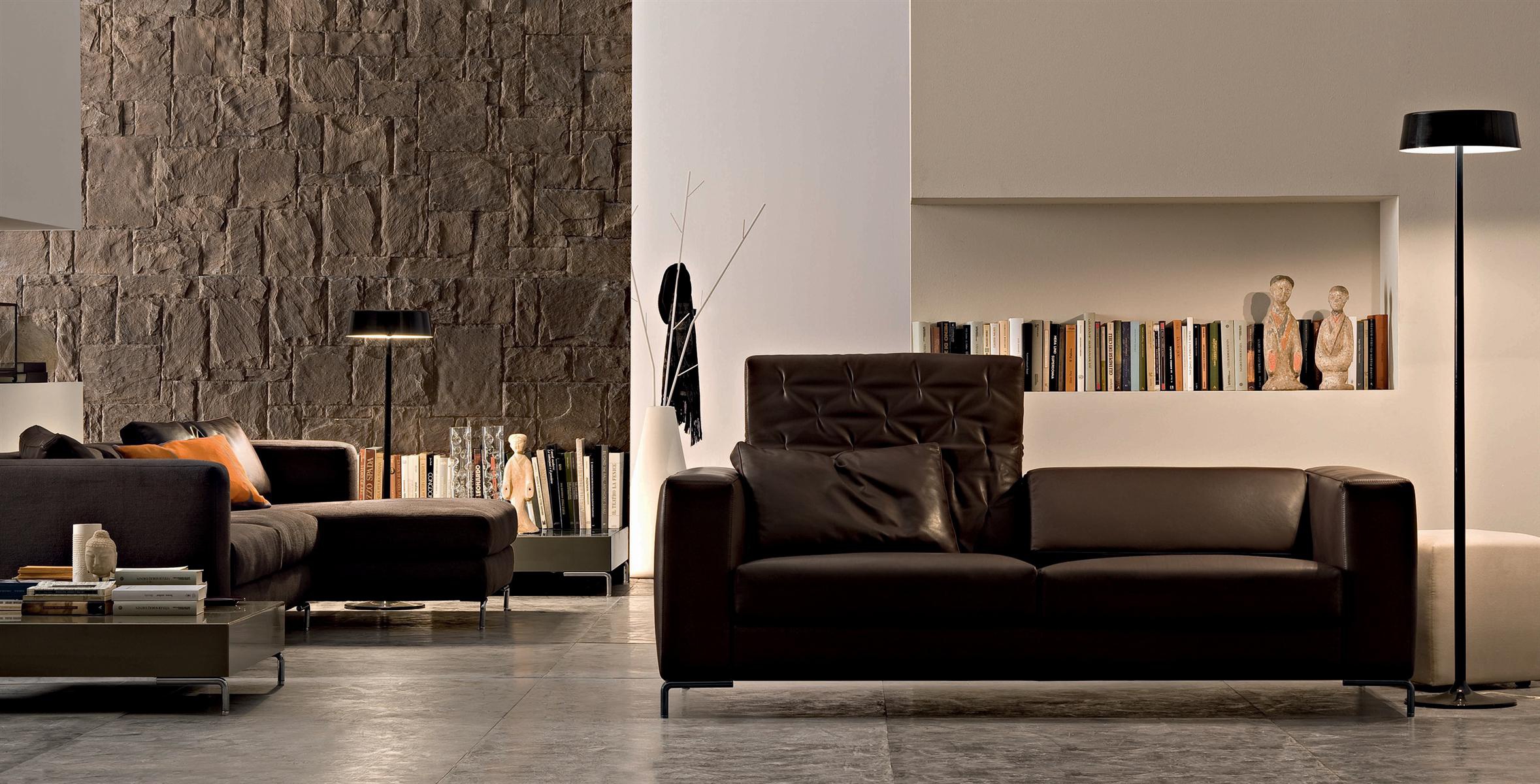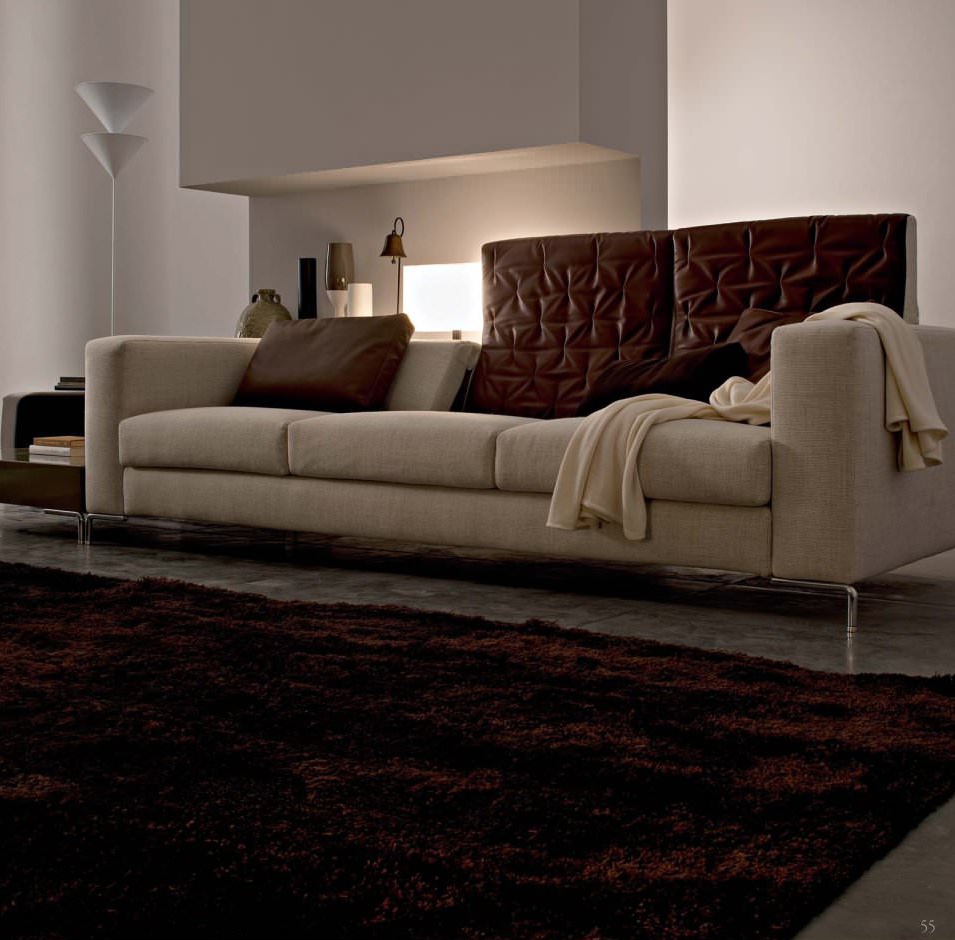 The Egadi sofa from Italian manufacturer Arketipo. The frame is made from solid wood and metal, filler - foam, upholstery - leather or textiles from a range of companies. Model triple. The design of complementary decorative pillows. A perfect choice for a living room in modern style.