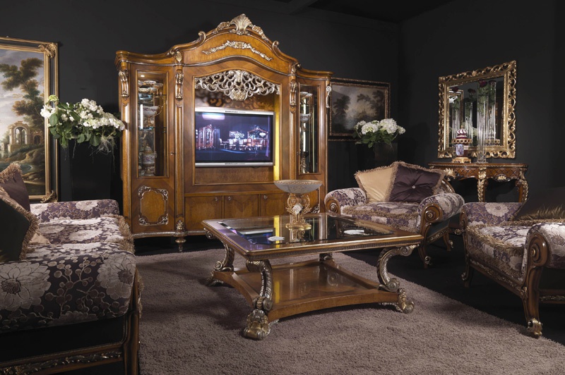 Furniture for TV, the Italian manufacturer Cantaluppi. The frame is made of wood. Finishing varnish from the company portfolio. The model is made in classic style.