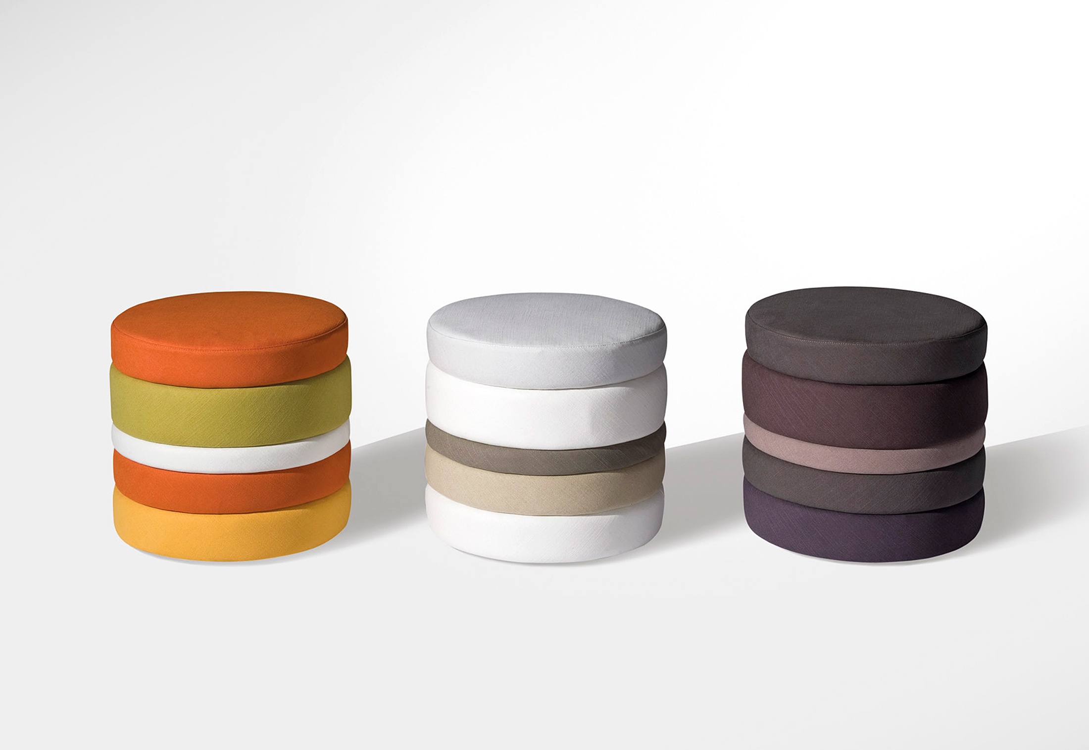 Poof on the frame of wood with base in plastic and padding, of textile fabrics, Geo, Arketipo