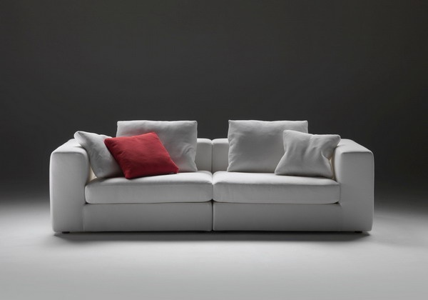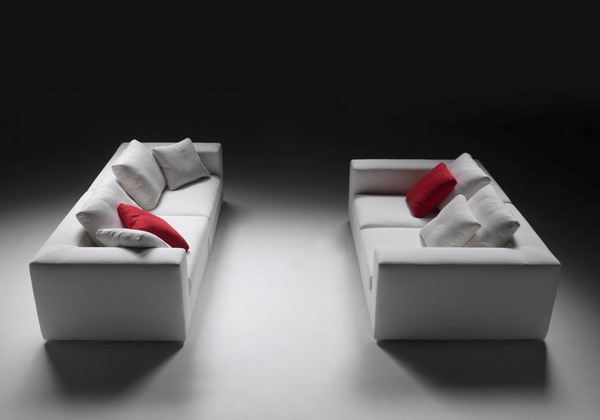 Double Ice 2 More sofa from Italian manufacturer Meritalia. Model with low backrest and square arm rests. The frame and legs of solid wood. Upholstery textile or leather. Color option to choose from a range of companies. Filler - foam and feather. Complement the design of the decorative cushions of different sizes.